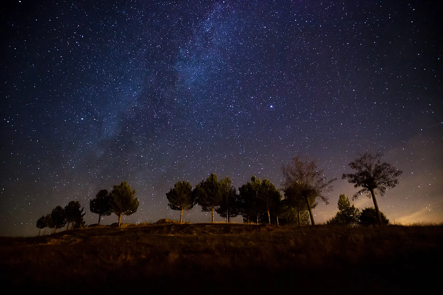 Iluminación mínima y bien cuidada para disfrutar de noches oscuras, galaxias visibles y fogatas seguras.